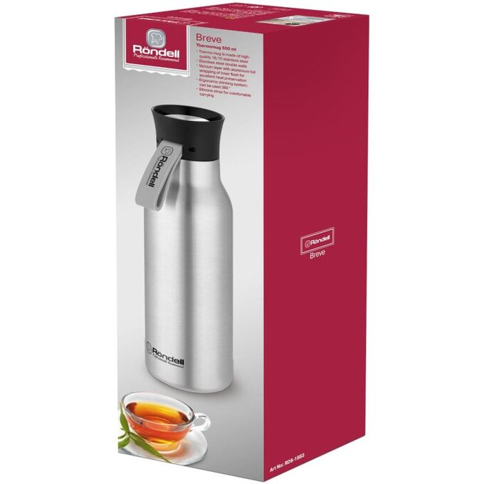 Термокружка Rondell Breve RDS-1883 0.5л. стальной матовый картонная коробка