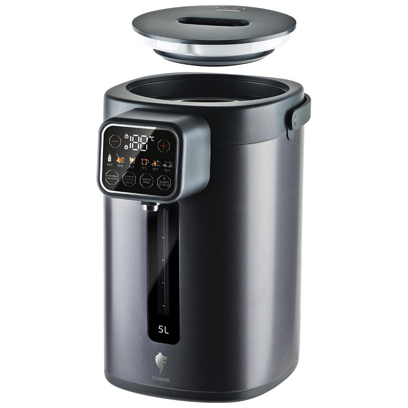 Наслаждайтесь идеально чистой водой с функцией дехлорирования и точным контролем температуры от 45 до 100℃. Мощность 1600 Вт и внутренняя колба из нержавеющей стали 304 обеспечивают мгновенное кипячение и длительное сохранение тепла без посторонних привкусов. LED дисплей отображает текущую температуру, а автоматическая подача одним нажатием кнопки делает использование невероятно удобным. Защита от детей и эргономичная ручка добавляют безопасности и комфорта в повседневной жизни. Пятилитровый объём идеален для семьи или офиса, а функция поддержания температуры избавит от необходимости повторного кипячения. Leonord — это безупречное качество и стильный дизайн для тех, кто ценит удобство и заботится о здоровье.
