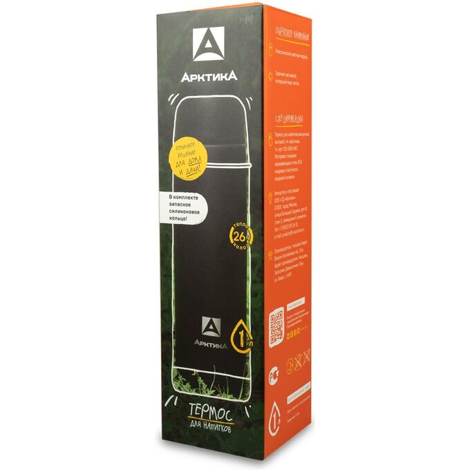 Термос АРКТИКА 102-1000 1000мл чёрный песок, матовый