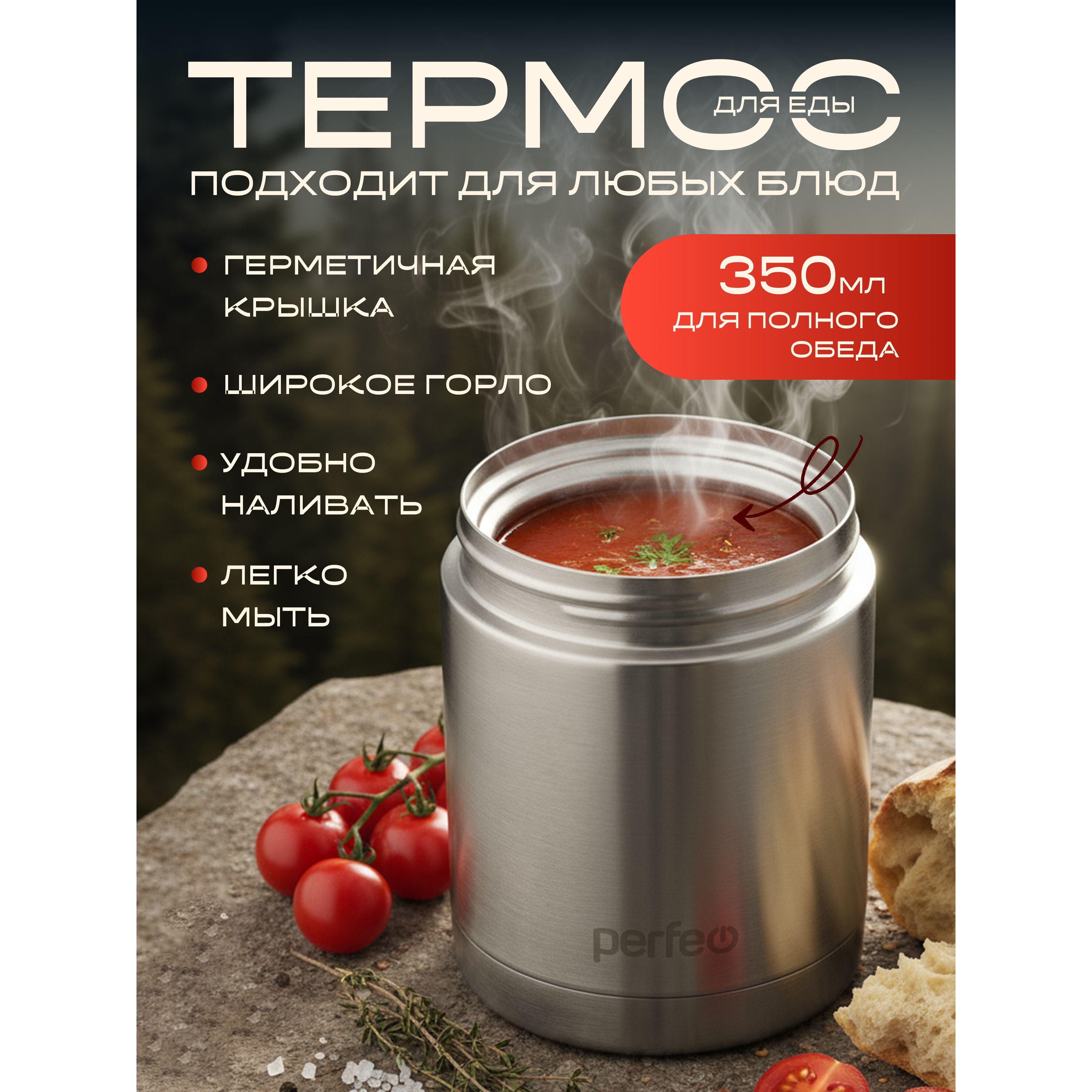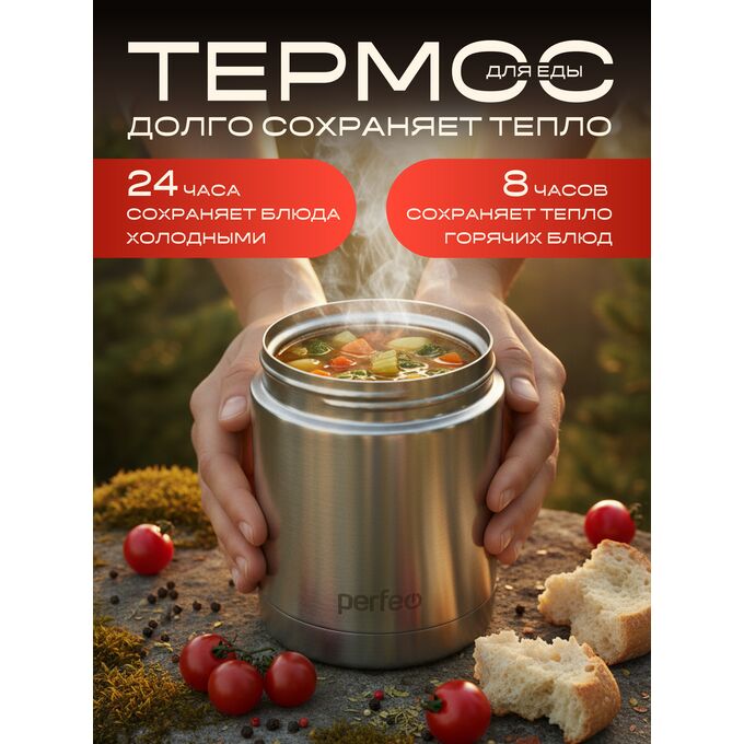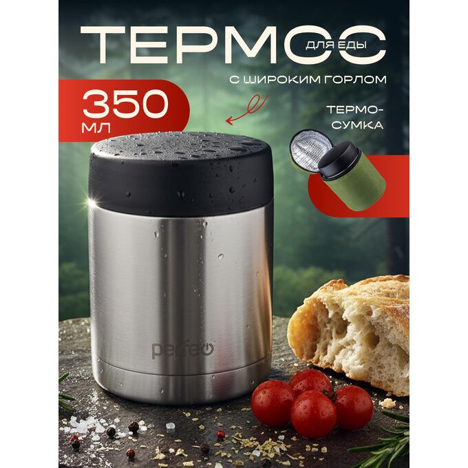 Термос для еды PERFEO с широким горлом, сумкой, объем 0,35 л., нержавеющая сталь, (Арт. PF_E1380)