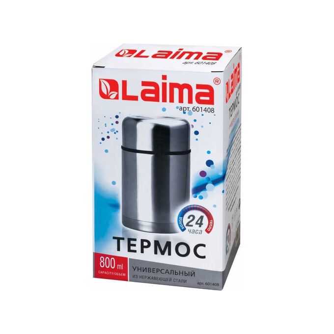 Термос LAIMA универсальный с широким горлом предназначен для хранения напитков, первых и вторых блюд.