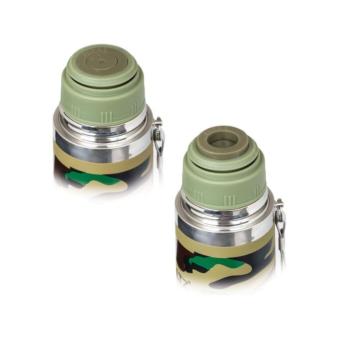 Термос диаметром 6,5 см и высотой 25 см оснащен специальной кнопкой, позволяющей наливать напитки, не отвинчивая пробку. Наличие ремешка обеспечит комфортное использование.