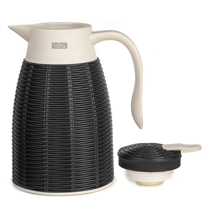 Термос со стеклянной колбой LARA LR04-80 в стилизованном под ротанг корпусе создает теплую и уютную атмосферу. Стекло не впитывает запахи и легко моется. Термоизоляционные свойства стекла вкупе с двойными стенками и зеркальным напылением увеличивают срок сохранения температуры. Элегантная открытая ручка внесет в дизайн современную нотку, как и практичная крышка-клапан: для подачи напитка достаточно нажать на рычаг, расположенный на крышке термоса. Термос со стеклянной колбой и двойными стенками LARA LR04-80 доступен в трех цветовых решениях: универсальном сером, оригинальном коричневом и строгом черном.