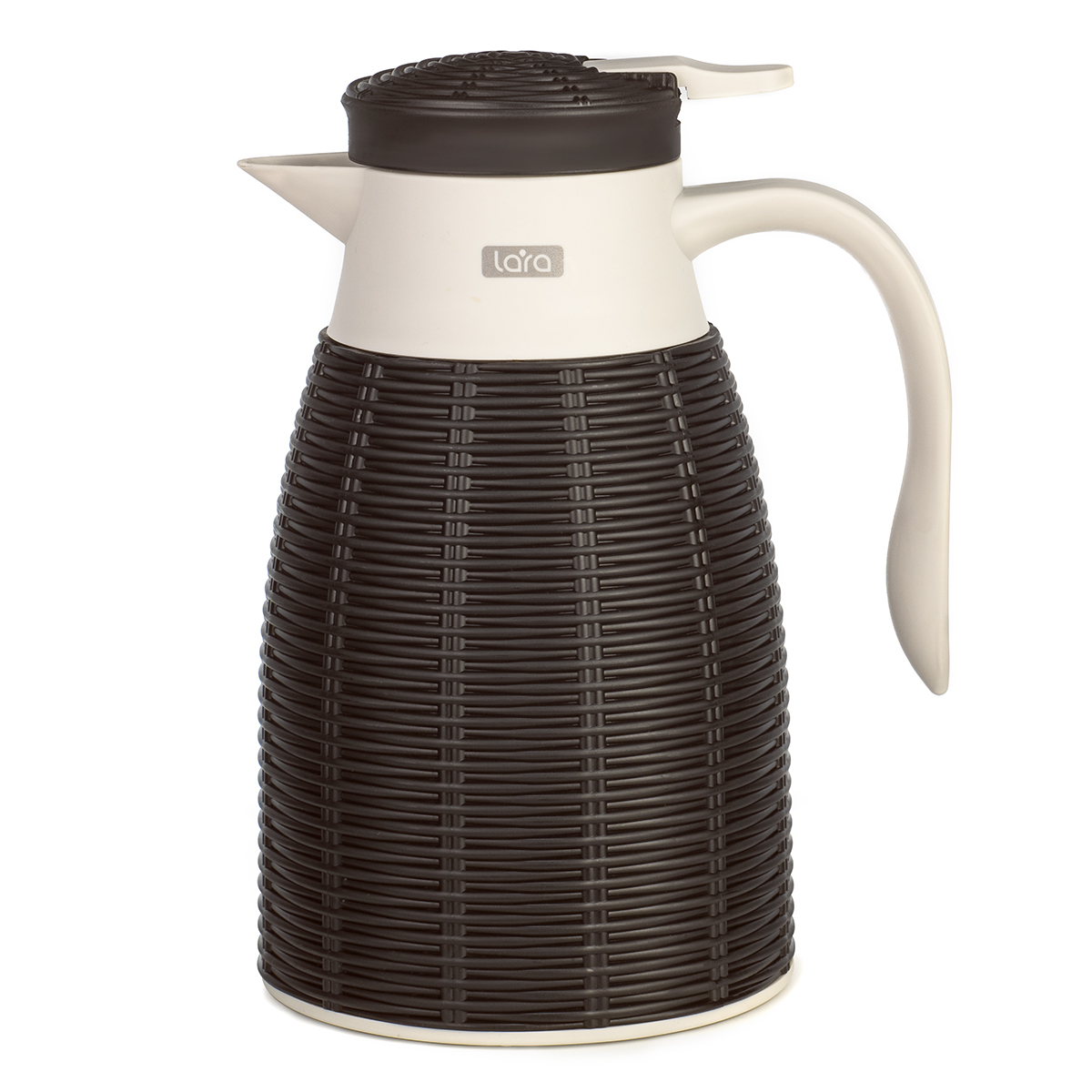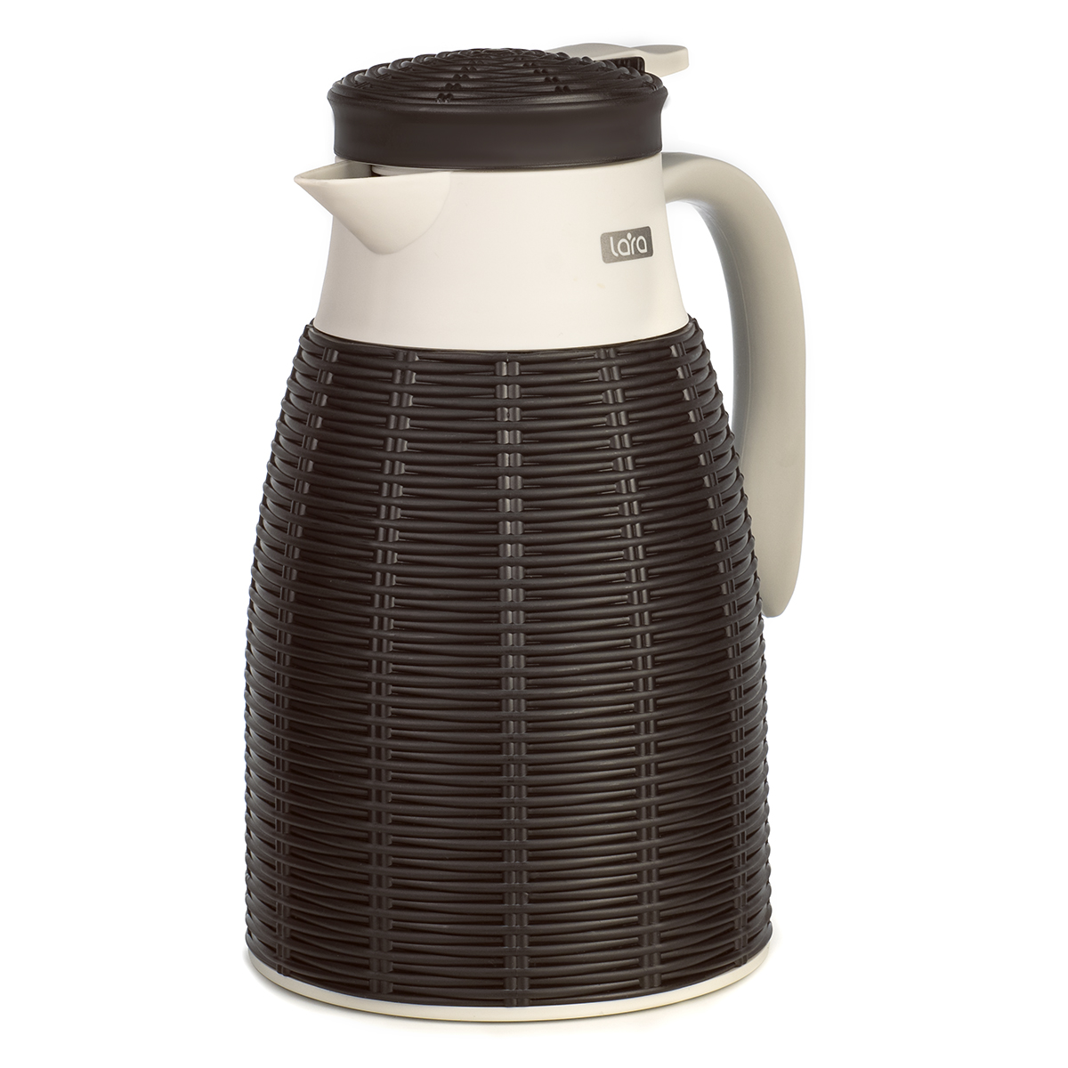 Термос со стеклянной колбой LARA LR04-80 в стилизованном под ротанг корпусе создает теплую и уютную атмосферу. Стекло не впитывает запахи и легко моется. Термоизоляционные свойства стекла вкупе с двойными стенками и зеркальным напылением увеличивают срок сохранения температуры. Элегантная открытая ручка внесет в дизайн современную нотку, как и практичная крышка-клапан: для подачи напитка достаточно нажать на рычаг, расположенный на крышке термоса. Термос со стеклянной колбой и двойными стенками LARA LR04-80 доступен в трех цветовых решениях: универсальном сером, оригинальном коричневом и строгом черном.