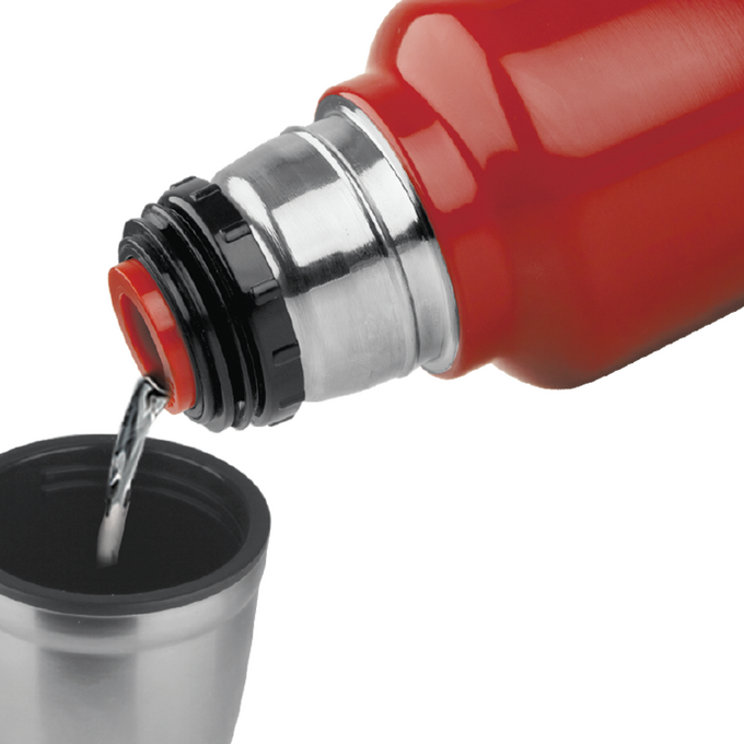 Преимущества: медная металлизация внутренней колбы для лучшего сохранения темеператур; удобная система открывания и наливания без потери температур