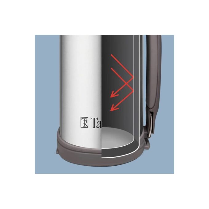 Двойные стенки и находящийся между ними вакуум минимизирует темплообмен, а внутренние стенки термоса отражают температуру содержимого. Вакуумная конструкция термоса предотвращает нагревание внешней стенки термоса, даже если он наполнен кипятком. Внутренняя кнопочная крышка гигиенична и герметична, а также минимизирует потери тепла и охлаждение напитка. При завинчивании внешней крышки клапан автоматически закрывается.