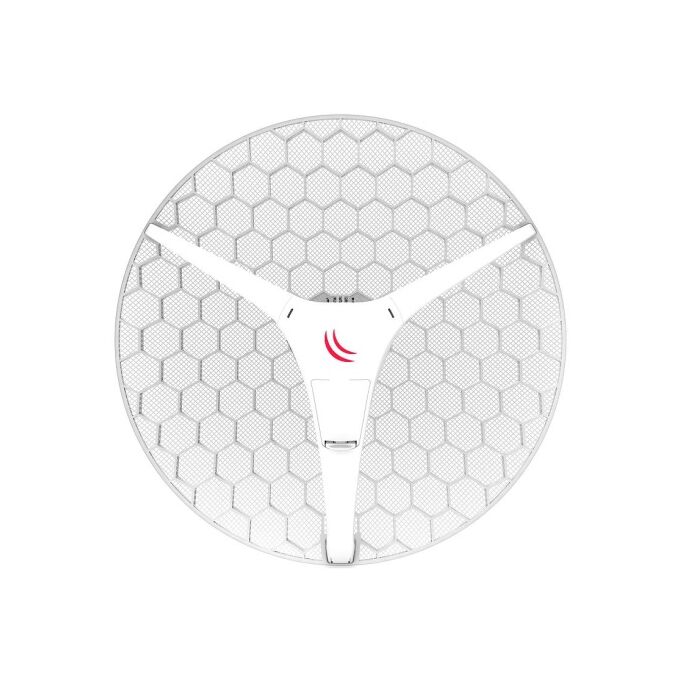 MikroTik LHG XL 5 RBLHGG-5acD-XL ac with 27dBi 5GHz antenna, Dual Chain 802.11ac wireless, 716MHz CPU, 256MB RAM, 1x Gigabit LAN, POE, PSU, RouterOS L3