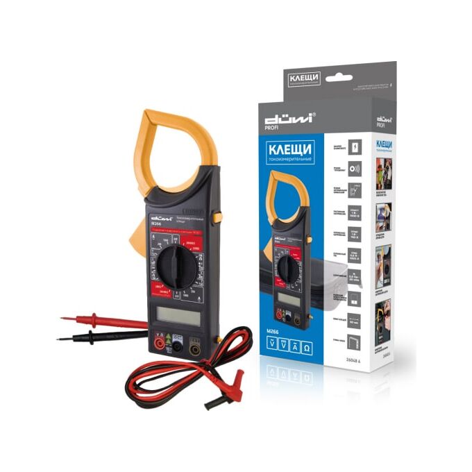 Токоизмерительные клещи duwi М266 PROFI 26048 6 используется для измерения постоянного и переменного напряжения, переменного тока, сопротивления и “прозвонки” цепи.