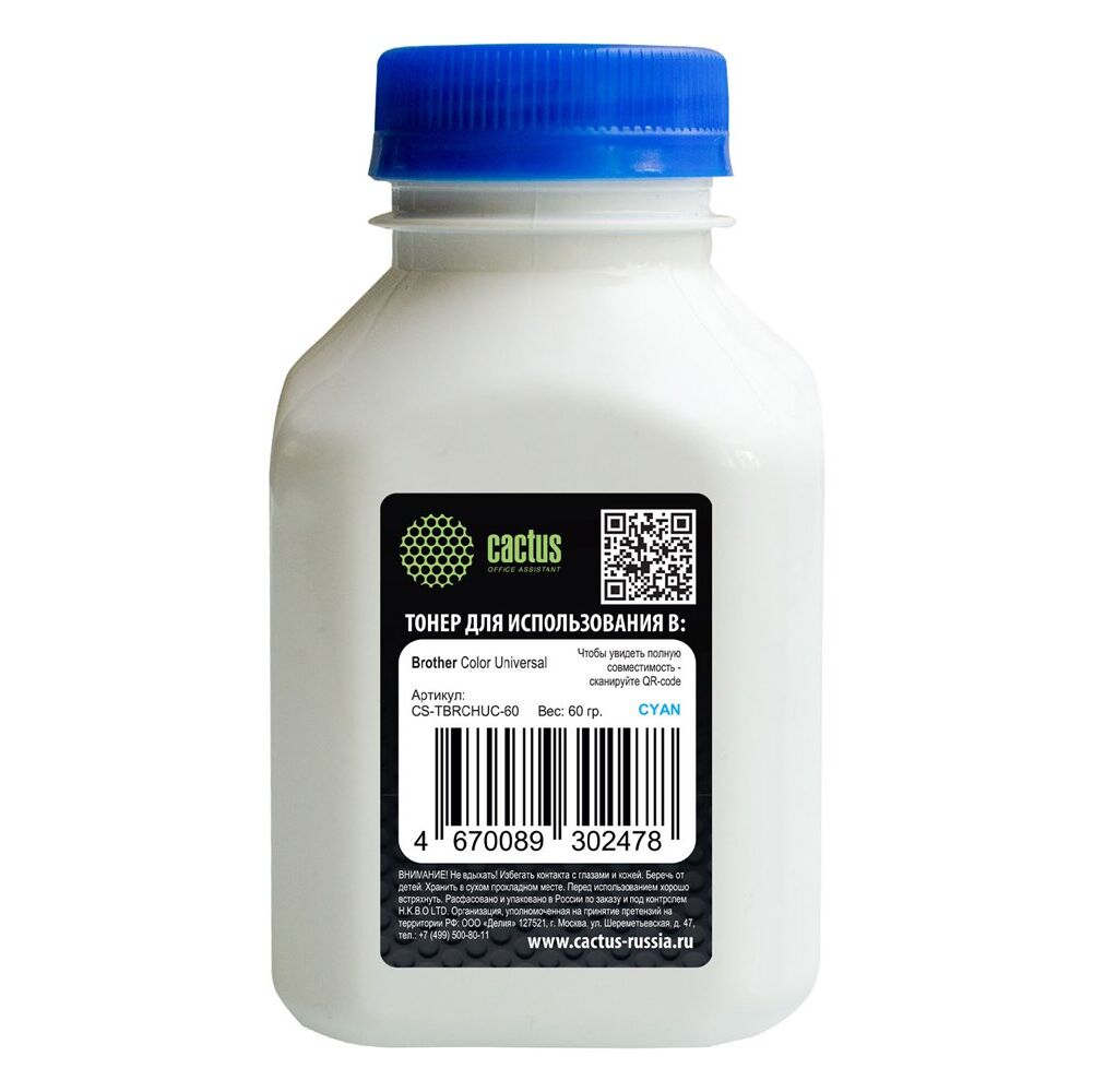 Тонер Cactus CS-TBRCHUC-60 голубой флакон 60гр для принтера Brother Color Universal