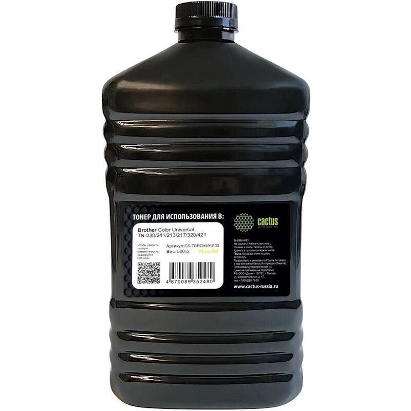 Тонер Cactus CS-TBRCHUY-500 желтый флакон 500гр для принтера Brother Color Universal TN-230/241/213/217/320/421