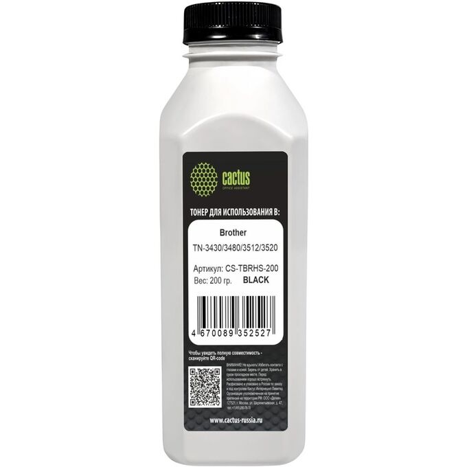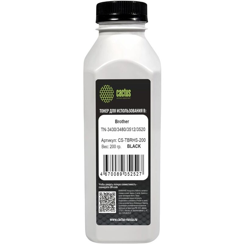 Тонер Cactus CS-TBRHS-200 черный флакон 200гр для принтера Brother TN-3430/3480/3512/3520