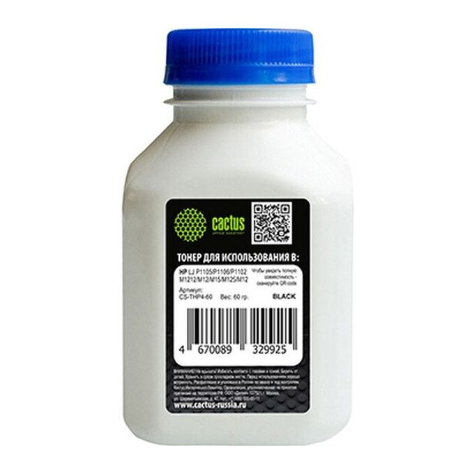 Тонер Cactus CS-THP4-60 черный флакон 60гр для принтера CB435A/CB436A/CE278A/CE285A/CF283A/CF244A/CF283X, принтеров HP LJ P1005/P1006/P1100/P1102/P15