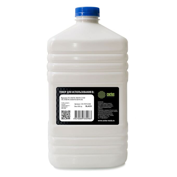 Тонер Cactus CS-TKY4-650 черный флакон 650гр для принтера Kyocera TK-330/TK-360/TK-3130/TK-3190/TK-3490 (для высокоскоростных машин серии 3xxx)