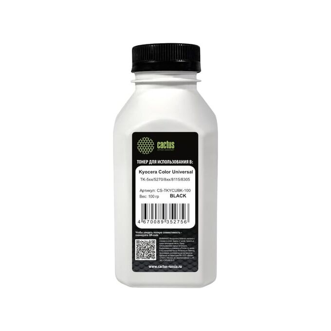 Тонер Cactus CS-TKYCUBK-100 черный флакон 100гр для принтера Kyocera Color Universal TK-5хх/5270/8xx/8115/8305