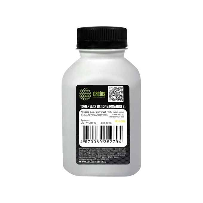 Тонер Cactus CS-TKYCUY-50 желтый флакон 50гр для принтера Kyocera Color Universal TK-5хх/5270/8xx/8115/8305