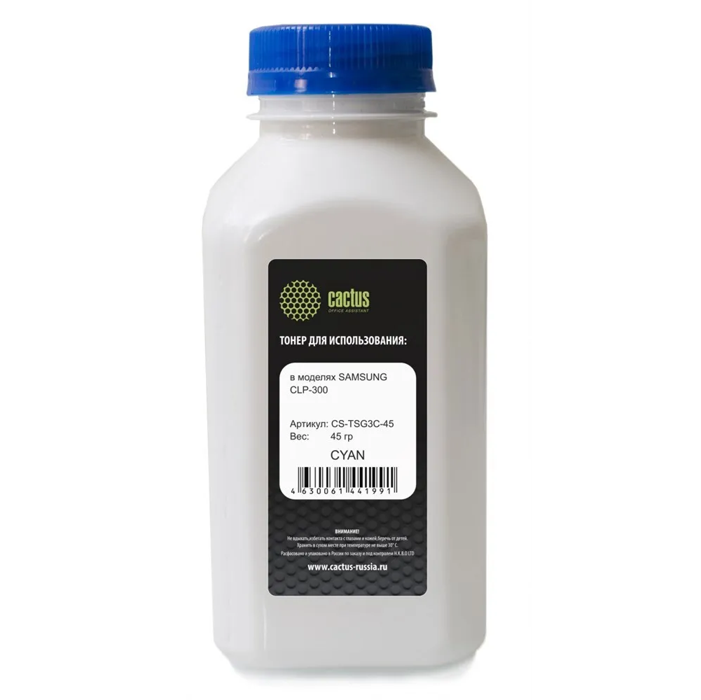 Тонер Cactus CS-TSG3C-45 подходит для заправки картриджа Samsung CLP-C300A и его аналога Cactus CS-CLP-C300A.