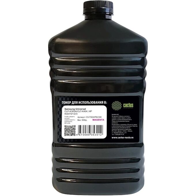 Тонер Cactus CS-TSGHPM-500 пурпурный флакон 500гр для принтера Samsung Universal CLP-K300A/CLT-K404; HP W2070/1/2/3