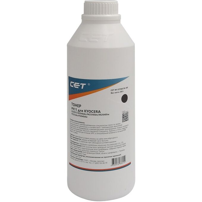 Тонер Cet PK11 CET8857B-300 черный бутылка 300гр для принтера Kyocera ECOSYS M2135dn/2735dw/2040dn/2640idw/P2235dn/P2040dw