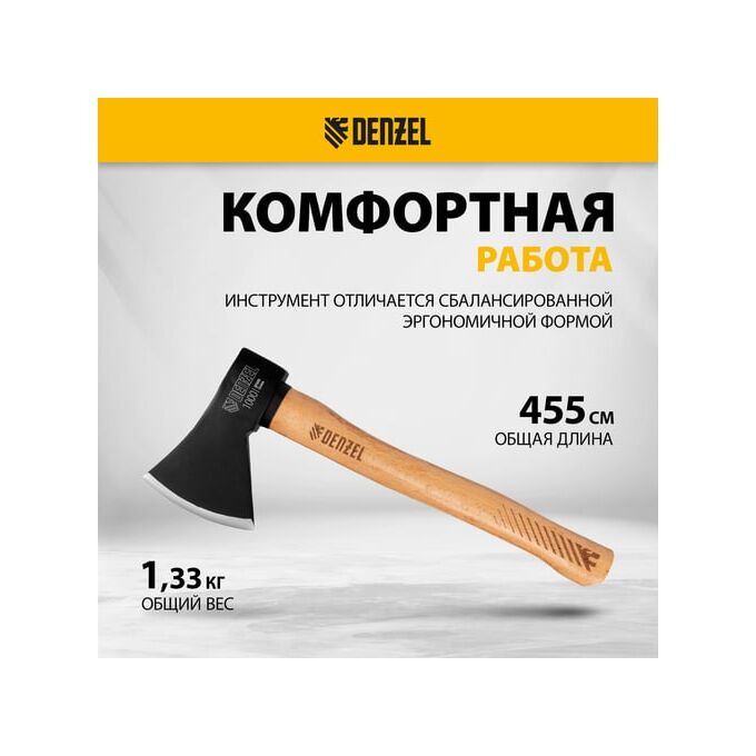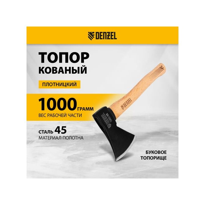 Топор Denzel 21634 1000 г, кованый, буковое топорище