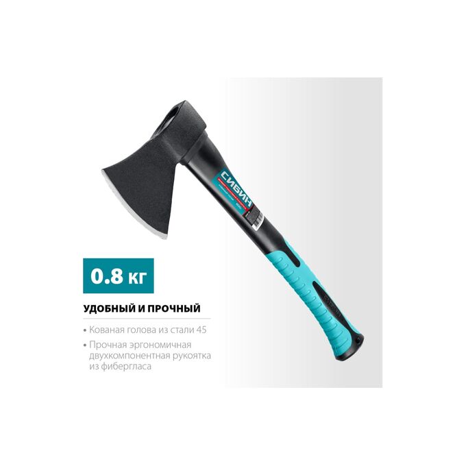Кованый топор с фиберглассовой рукояткой СИБИН 800/980 г, 380 мм 2080-08 предназначен для всех видов плотницких работ.