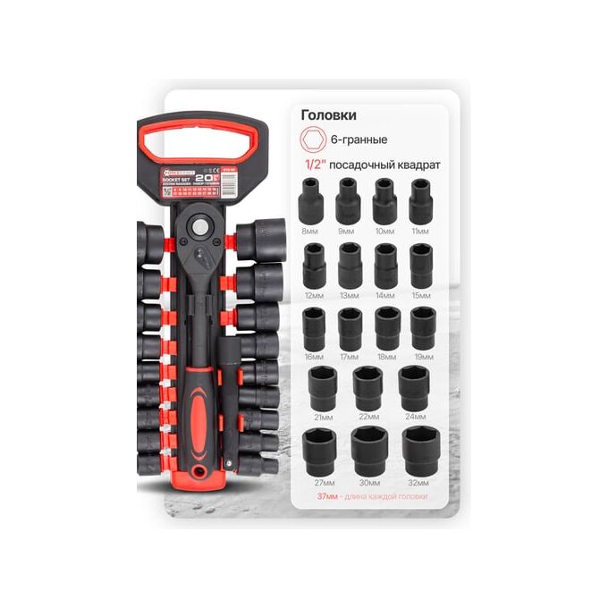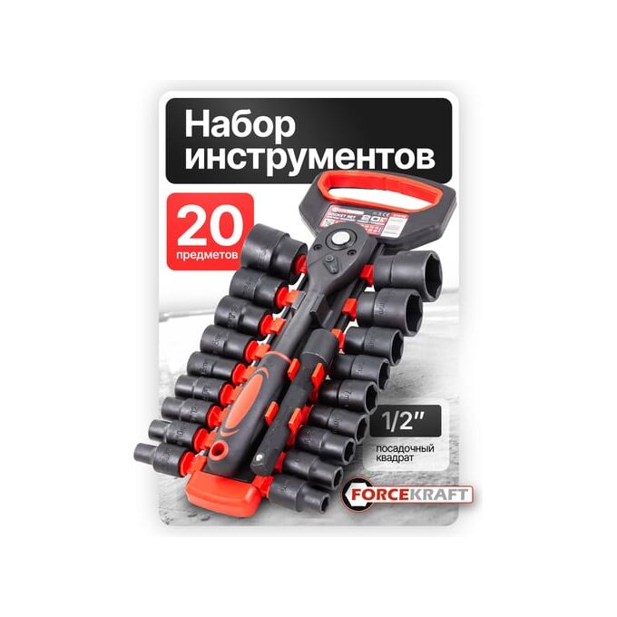 Торцевые головки Forcekraft FK-019-5K(59788) 20 предметов, 1/2"