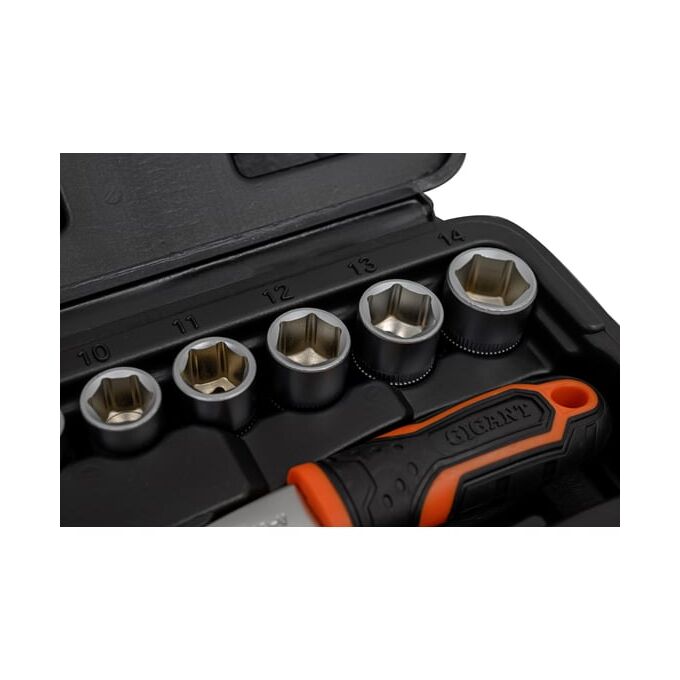Торцевые головки Gigant GAS19 6-ти гранные с трещоткой 1/4" 19 пр.