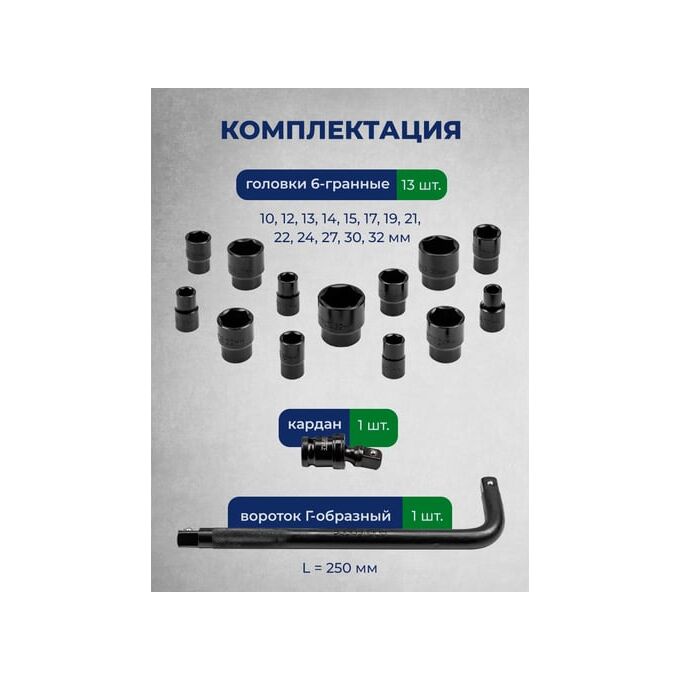 Торцевые головки Rockforce RF-4159K(58492) ударные 15 предметов 1/2" 6-гр., в ложементе