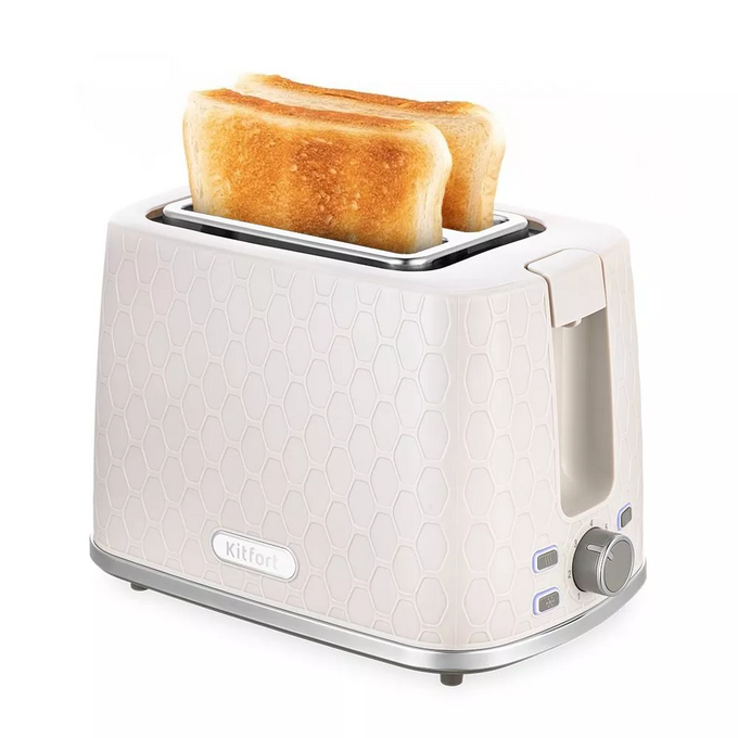 Тостер Kitfort КТ-6075 порадует вас не только приготовленными хрустящими тостами, но и своим красивым дизайном! Тостер выполнен в бежевом цвете, а на его корпусе сделан узор в виде пчелиных сот. Вы можете приготовить сразу 1 или 2 тоста одновременно.