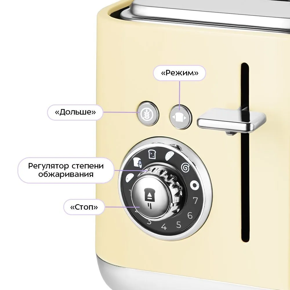 По окончании приготовления тостер автоматически отключается, а хлеб, бейгл или пончик поднимаются вверх для удобного извлечения. Несколько минут – и вкусный, хрустящий завтрак уже готов