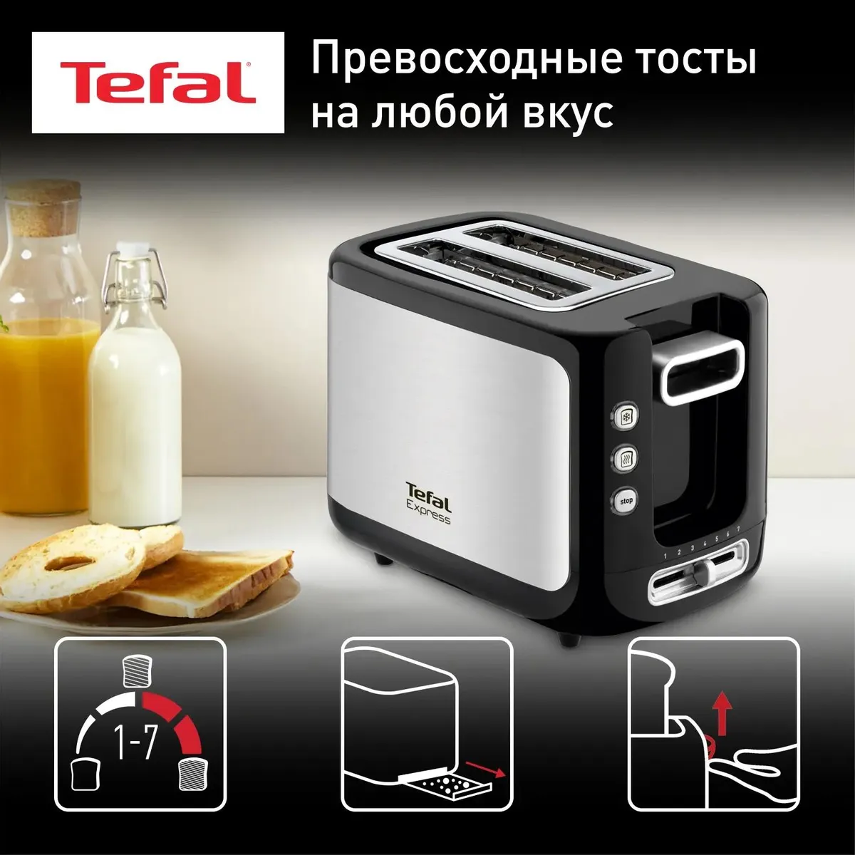 Тостер Tefal TT365031 серебристый/черный