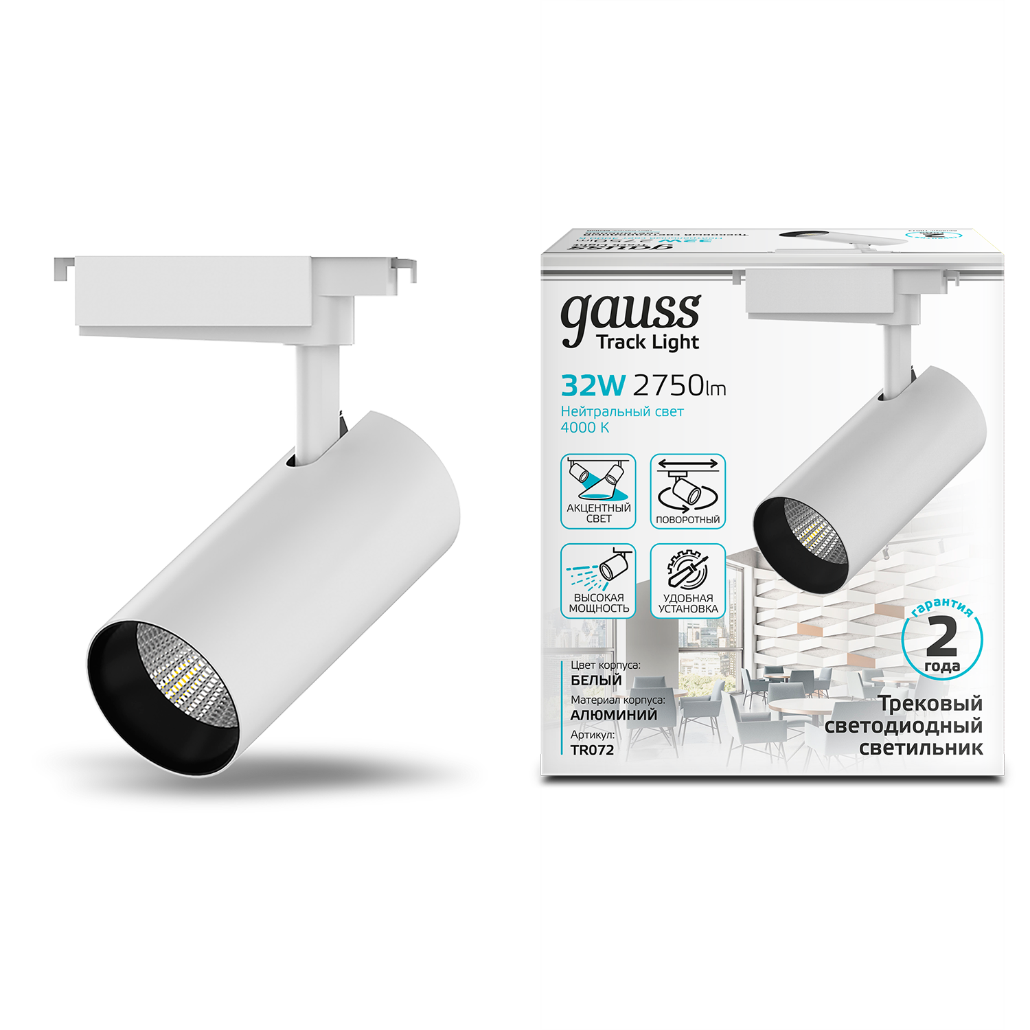 Светильник трековый Gauss цилиндр 32W TR072 это самый мощный LED спот который может быть встроен в трековую систему. Он один осветит достаточно пространства над письменным столом, журнальным и туалетным столиками. Подойдет в качестве света для макияжа, так как не искажает цветов (цветовой диапазон 4000К). Отлично послужит стильным освещением салона красоты, магазина, барной витрины. А так же будет красиво смотреться в гардеробной, кабинете, детской, гостинной, прихожей.