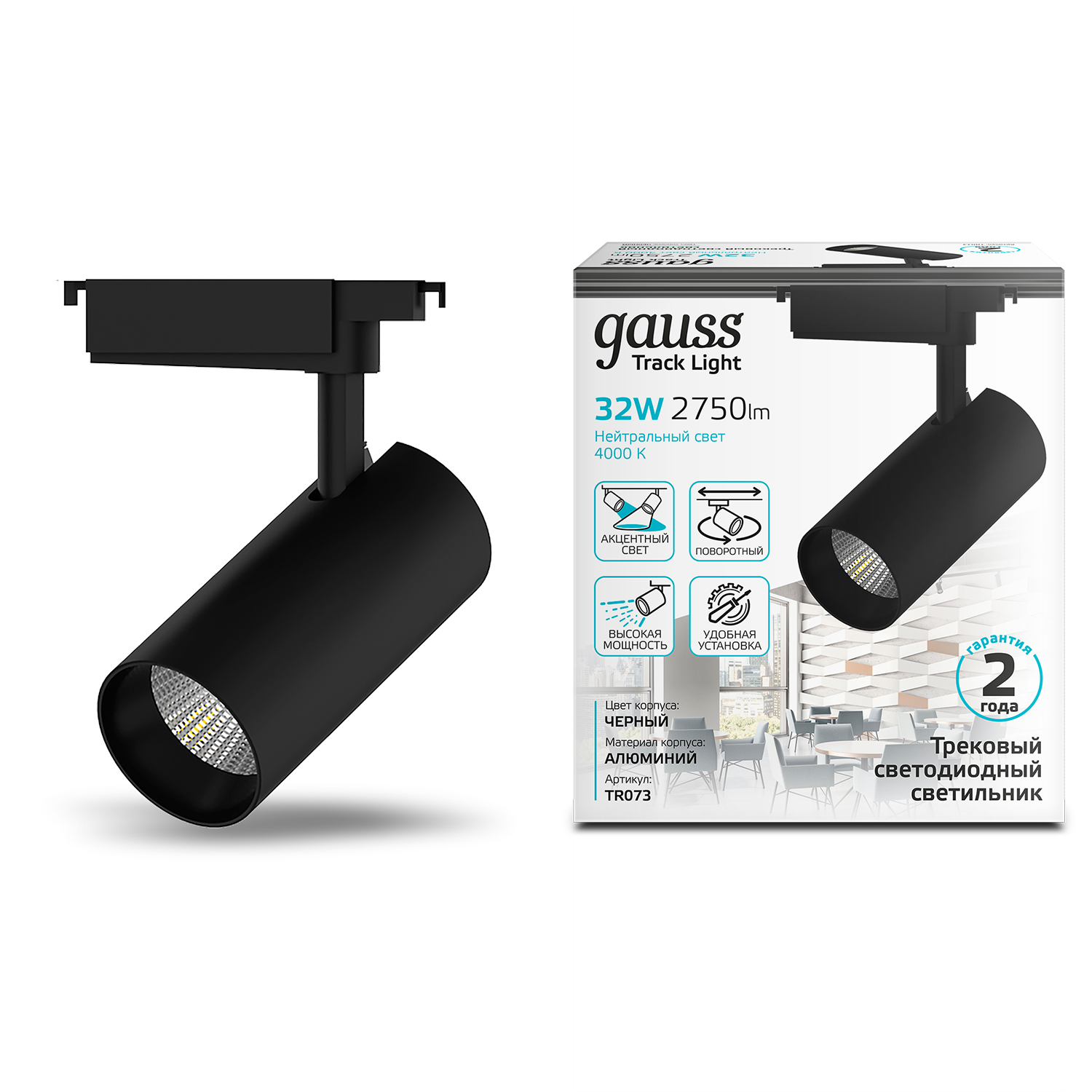 Светильник трековый Gauss цилиндр 32W TR073 - отличное решение для исполнения разных световых сценариев и в большой зонированной гостинной, и в небольшой уютной спальне. Светильник прекрасно встраивается в систему трекового освещения Gauss, а его максимально подвижный корпус может быть направлен в любую точку комнаты. Спот изготовлен из алюминия, что избавляет от перегрева даже в самом жарком помещении. В качестве основного света может быть использован в жилых и коммерческих помещениях. Яркость светового потока составляет 2750лм и угол концентрации светового луча 24°. Цветовая температура 4000К.