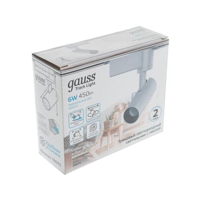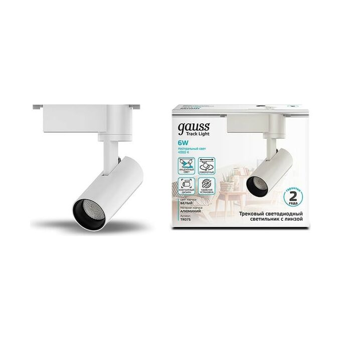 Трековая система GAUSS TR075, 6Вт, 4000К, белый нейтральный, белый