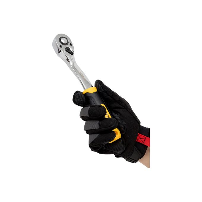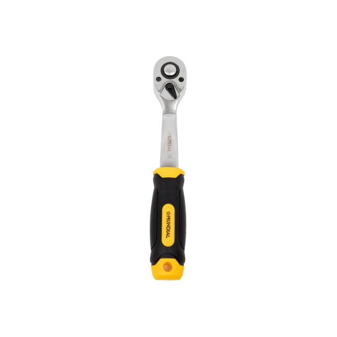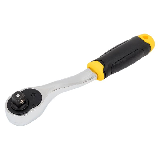 Ключ-трещотка с инновационной системой быстрого сброса, изготовленный из высокопрочной хромованадиевой стали с хромированным покрытием для максимальной защиты от коррозии и износа. Изогнутая рукоятка, объединенная с удобной пластиковой ручкой, обеспечивает оптимальный доступ к труднодоступным местам и снижает усталость при работе. Механизм быстрого сброса позволяет мгновенно отсоединить головку ключа, существенно ускоряя работу и повышая эффективность. Прочный и надежный, этот ключ-трещотка — незаменимый инструмент как для профессионалов, так и для требовательных пользователей, которым важна скорость и удобство работы.
