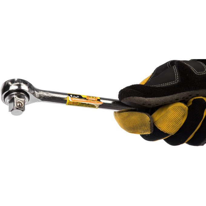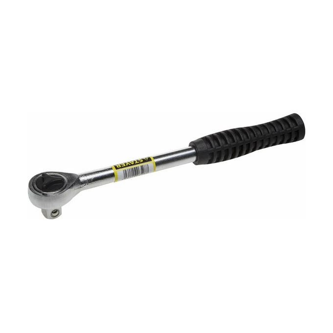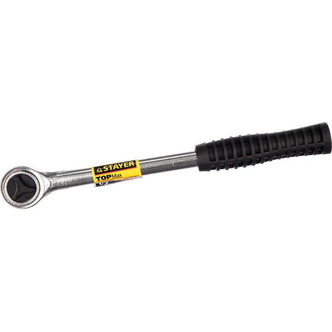 Рукоятка трещотки для торцевых головок STAYER МАСТЕР 2778-1/2 изготовлена из пластика и не скользит в руке, обеспечивая надежное удержание.