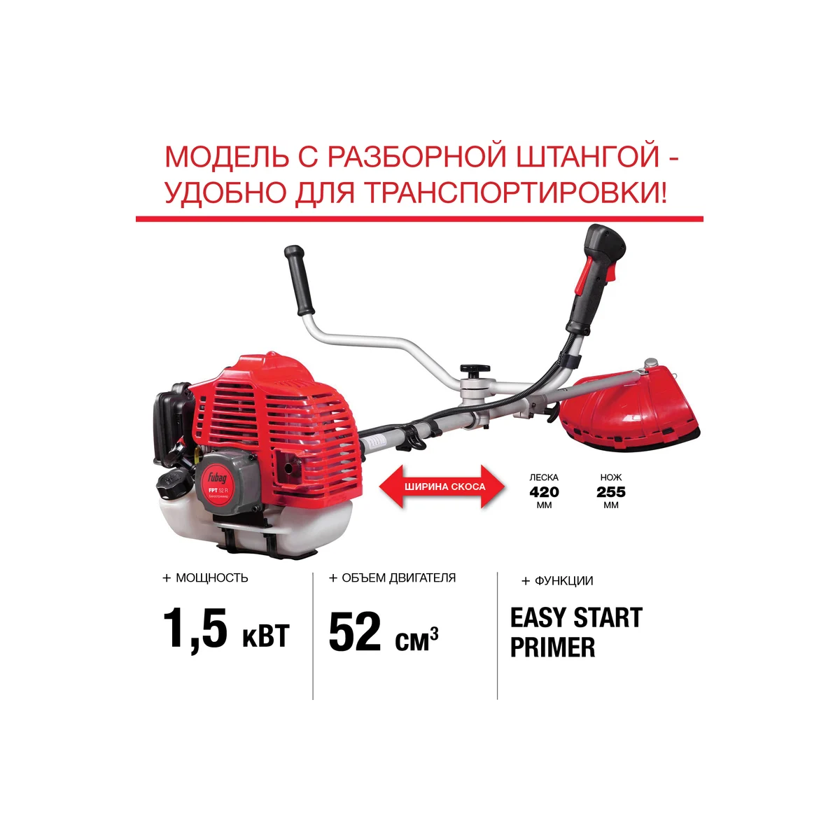 Триммер бензиновый FUBAG FPT 52R (41049) комплект из 2-х коробок