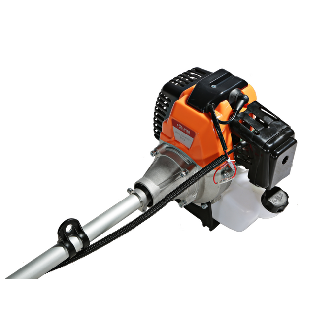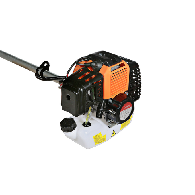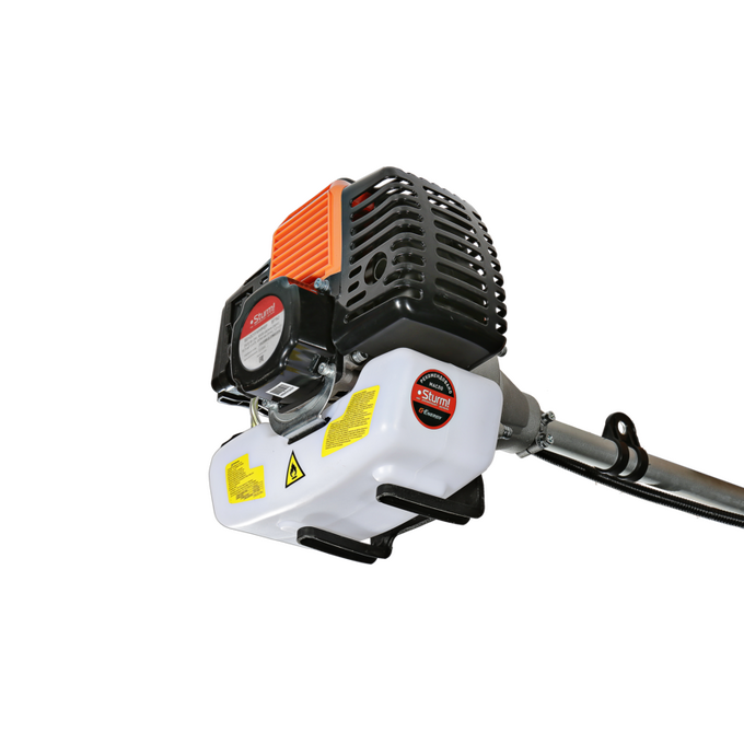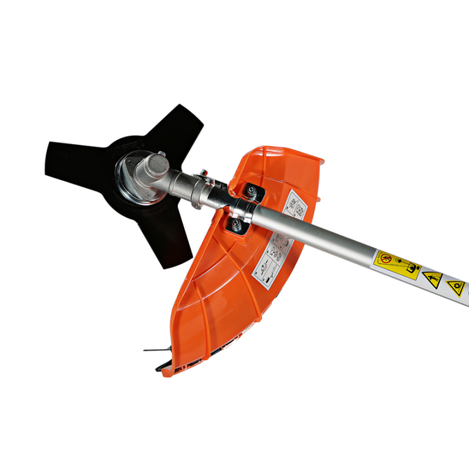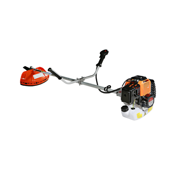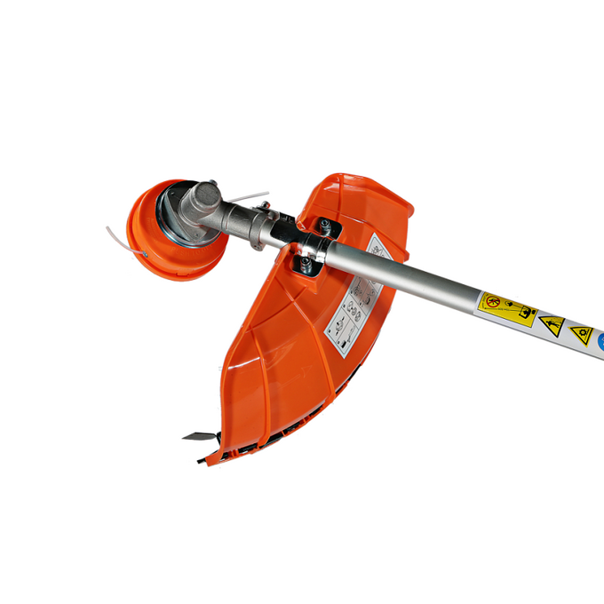 Универсальный защитный кожух подходит для использования с ножом-косой, которая облегчает срезание жестких зарослей, или кордовой головкой для травы. Заменить оснастку при этом можно просто и безопасно. Система легкого старта отвечает за бесперебойный запуск мотора без чрезмерного приложения усилий. Праймер подкачки топлива облегчает включение двигателя в сложных условиях. Наличие возвратного механизма стартера постоянно поддерживает инструмент в готовом к работе состоянии. Это обусловлено тем, что он автоматически приводит его в стартовое положение для быстрого последующего запуска.
