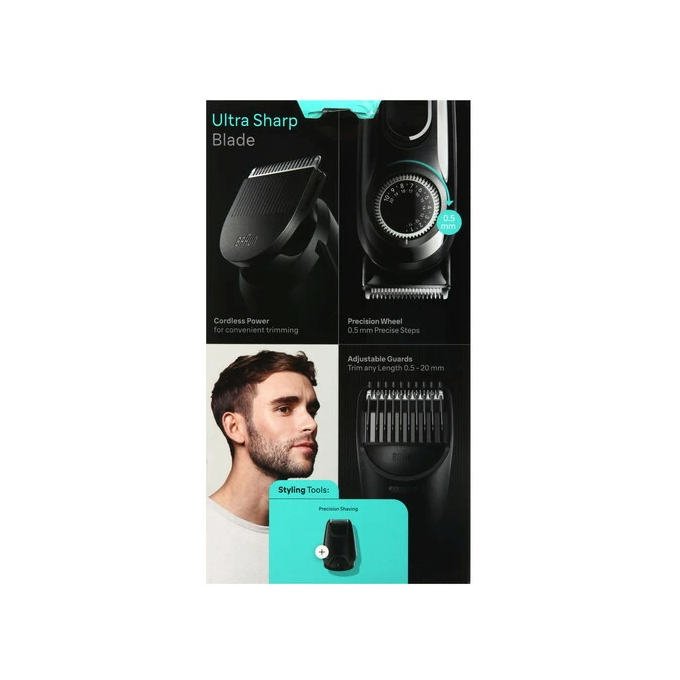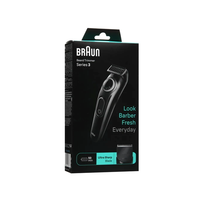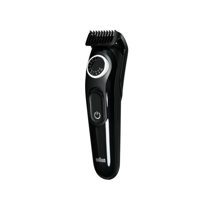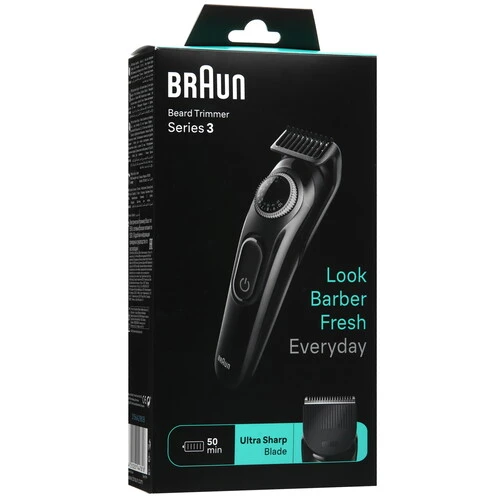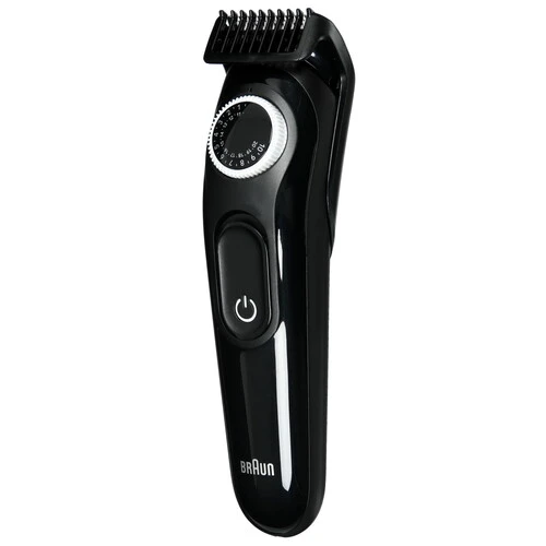 Триммер Braun BT3420 удобен для стрижки бороды и усов. Путем смены насадок и регулировки вы можете выбирать длину от 1 мм до 1 см. Лезвия из нержавеющей стали допускают только сухой способ чистки с помощью щеточки. Триммер может работать от сети или АКБ. Емкости батареи хватает на 50 минут.