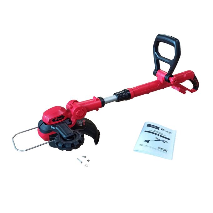 - триммер аккумуляторный - 1 шт.; - рукоятка D-образная - 1 шт.; - защитный кожух - 1 шт.; - триммерная катушка с леской - 1 шт.; - направляющее колесо с кронштейном - 1 компл.; - руководство по эксплуатации - 1 шт.; - упаковочная коробка.