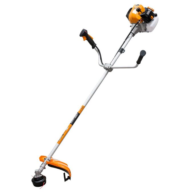 плечевой ремень, руководство по эксплуатации, триммерная головка, диск/нож, емкость для топливной смеси, набор инструментов (отвертка, свечной ключ), набор крепежный