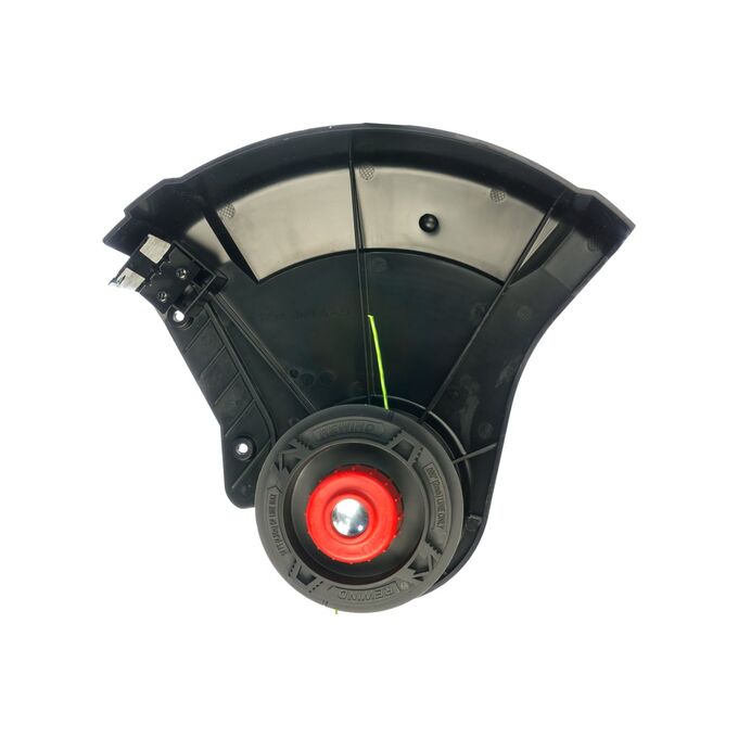 На защитном кожухе имеется нож для подрезки лески, что позволяет регулировать ширину скашивания.