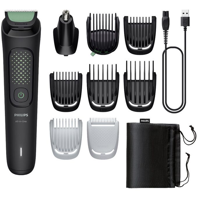 триммер для носа и ушей (1шт.), гребень для стрижки волос (6 шт.), регулируемая насадка (1шт.), насадка-бритва (1шт.)