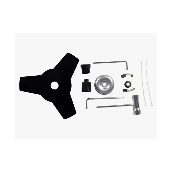 Ширина скашивания леской составляет 23 см, а ножом — 42 см, что позволяет выбрать оптимальный режим работы в зависимости от типа растительности. Длина кабеля 35 см обеспечивает достаточную свободу передвижения, а в комплекте с триммером вы найдете все необходимое для его сборки и эксплуатации: моторный узел, нижнюю штангу с редуктором, защитный кожух, отсекающий нож, комплект рукоятки, катушку с леской, нож, плечевой ремень и инструменты для сборки.