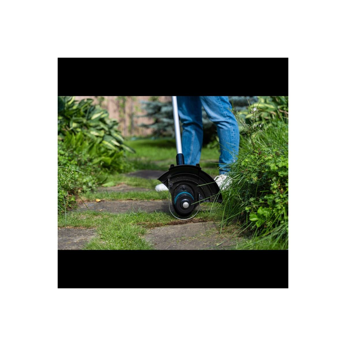 Поворотный двигатель позволит подравнять разросшуюся кромку газона.