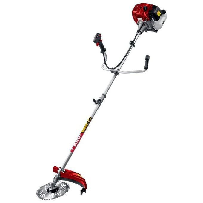 Двигатель увеличенной мощности. Легко справится как с густой травой, так и с кустарником. Удобно использовать на ровных участках и в труднодоступных местах. Блокировка управления подачей топлива для безопасности оператора. Редуктор на выходе повышает крутящий момент.