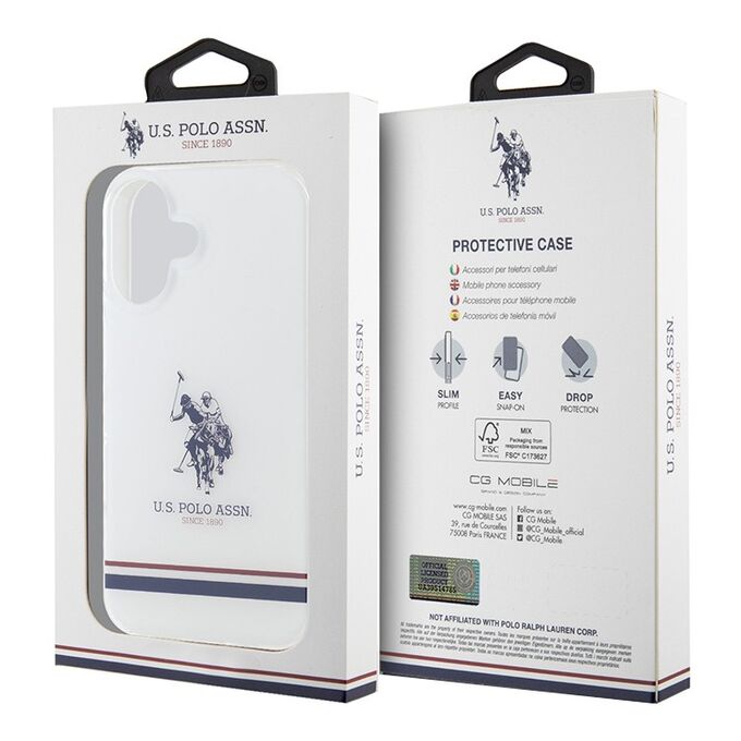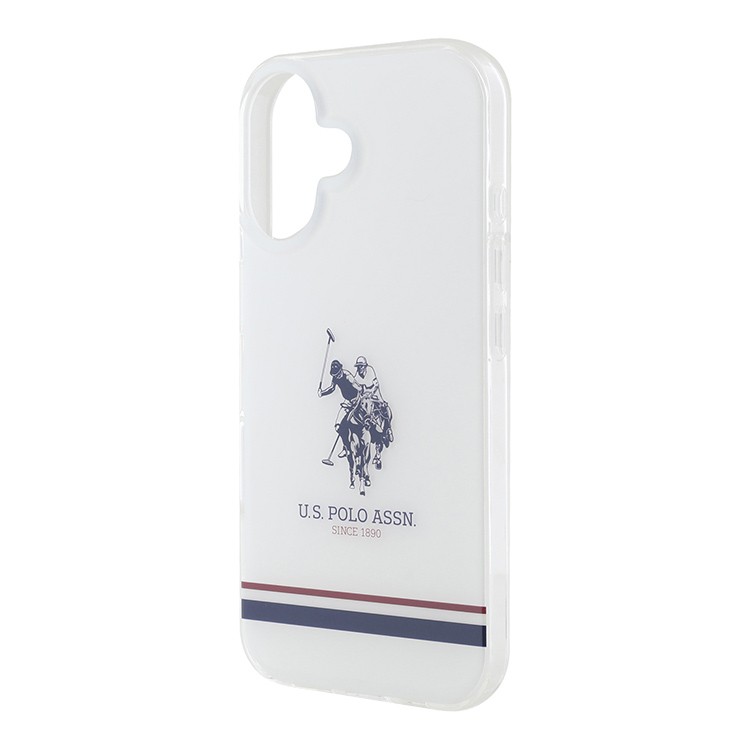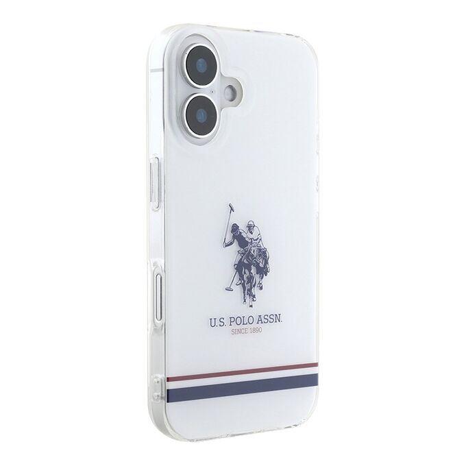 U.S. Polo для iPhone 16 чехол PC/TPU Double Horse logo Tricolor stripes Hard Transparent
