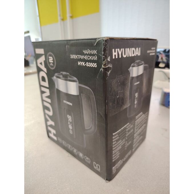 УЦ Электрочайник Hyundai HYK-S3505 1.5л. черный металл (плохая упаковка, малые вмятины на корпусе)