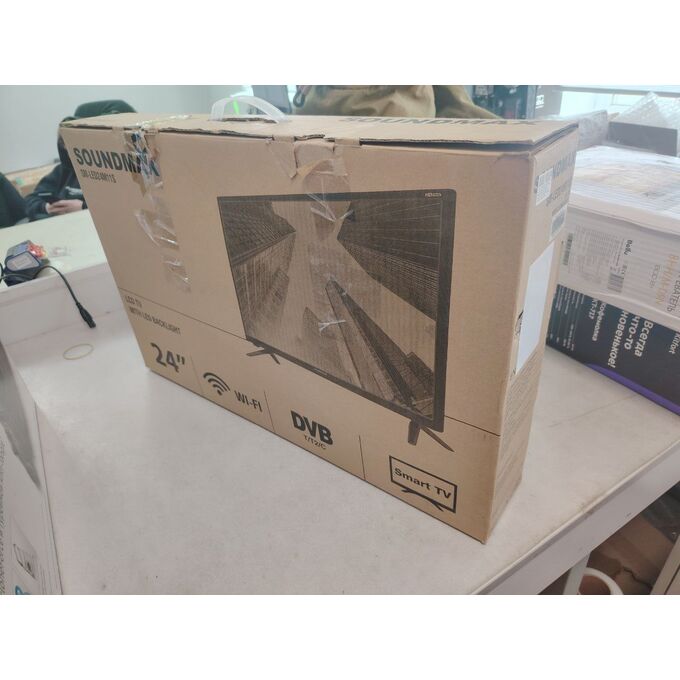 УЦ 24" Телевизор Soundmax SM-LED24M11S черный 1366x768, HD, 60 Гц, Wi-Fi, Smart TV, Android TV (плохая упаковка, бу, замена динамиков)