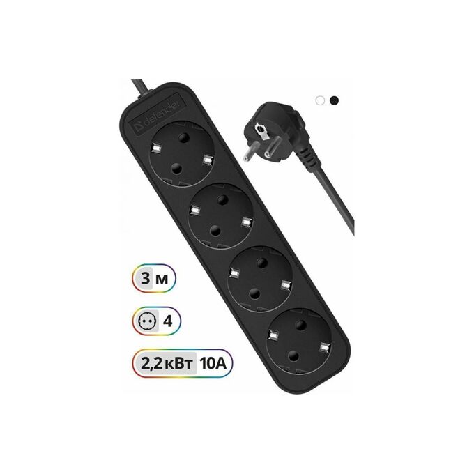 Удлинитель DEFENDER M430 3.0 м, 4 розетки, черный (99326)