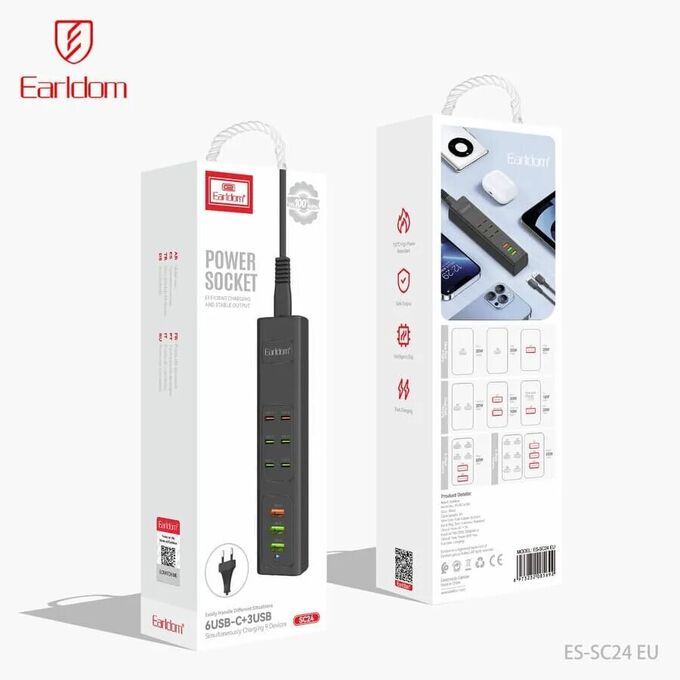 Удлинитель Earldom ES-SC24 EU, 3USB+6Type C PD, длина 1м